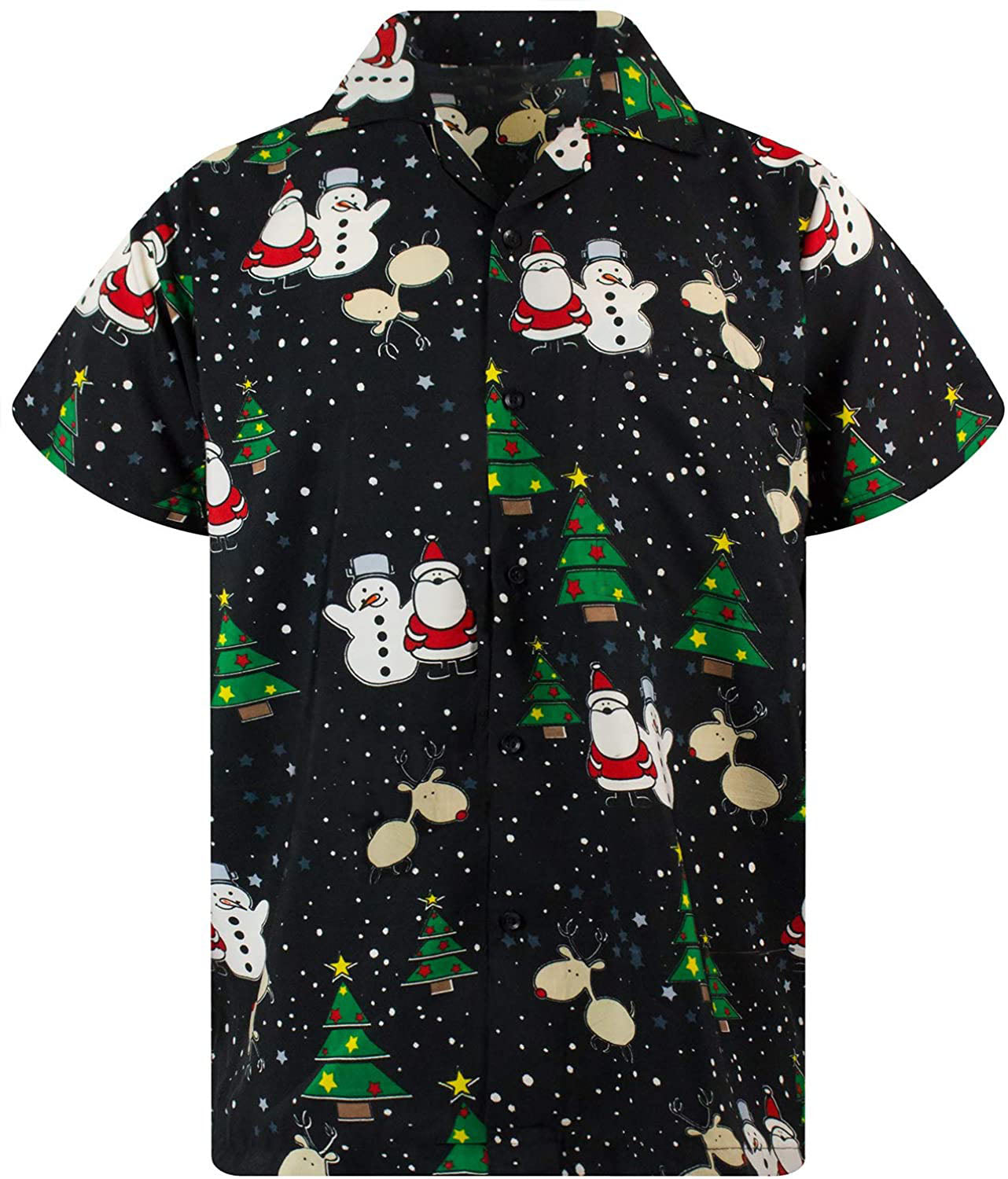 Product Features • Classic short-sleeve button-up with a collared neckline • All-over festive print - bold and fun for the season • Super soft cotton-blend fabric (75% cotton, 25% polyester) • Regular fit for everyday comfort • Lightweight and breathable – perfect for Aussie summer celebrations • Suitable for men or unisex wear